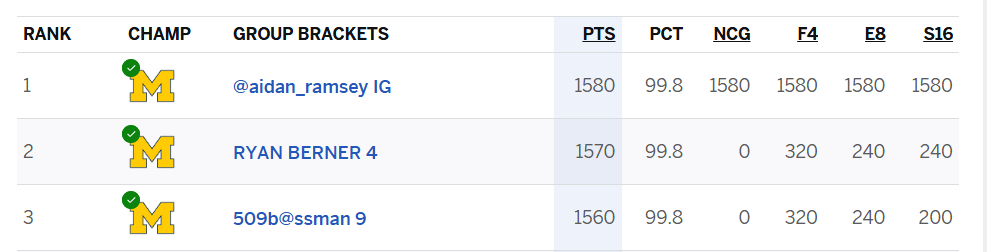If you are one of these three brackets, please email [email protected] so we can get you your prizes! |